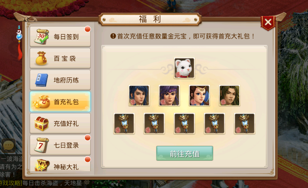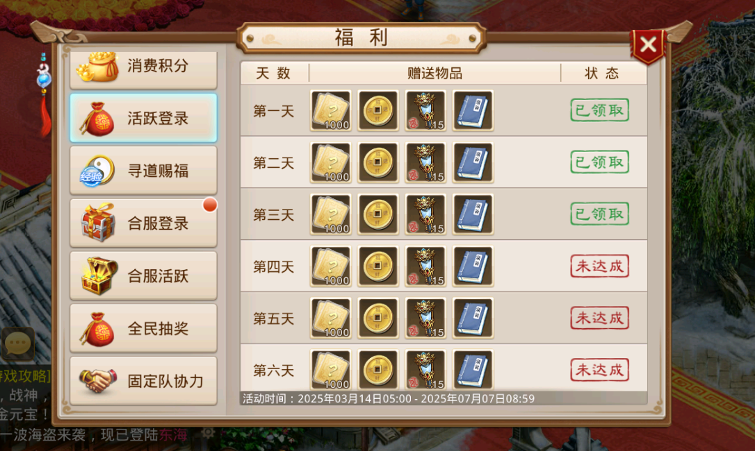 10.活跃7日登录:每天好礼抽奖次数1000+金钱8888888+神兽牌子15+潜能500万