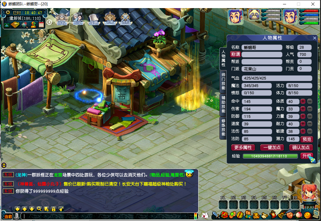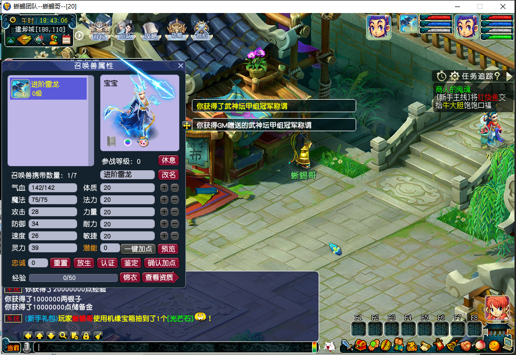 1、添加潜力丹、灵韵精华给人物、宠物增加一点属性点