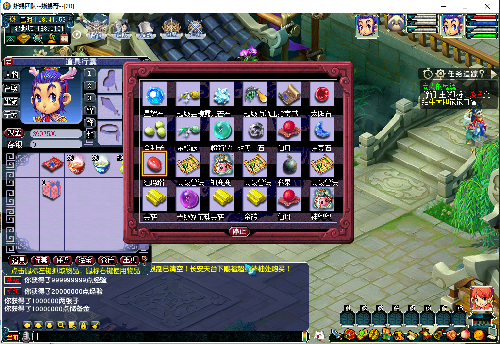 更新双副本官员,辰年活动,矿石兑换,傲来国云游道人物品价格!